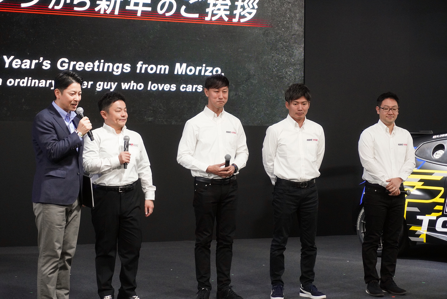 TASのプレスカンファレンスは2025年も、トヨタGAZOOレーシング(TGR)からスタート。豊田章男会長ことモリゾウさんの新年の挨拶を予定していましたが、今年は体調不良により急遽欠席となり、TGRの高橋プレジデントとルーキーレーシングの選手のみなさん、そして富川アナウンサーが代わりにプレス発表を行いました。