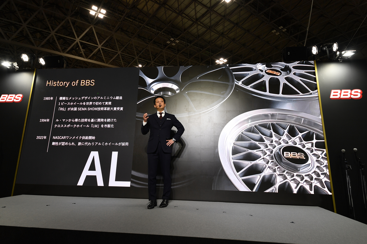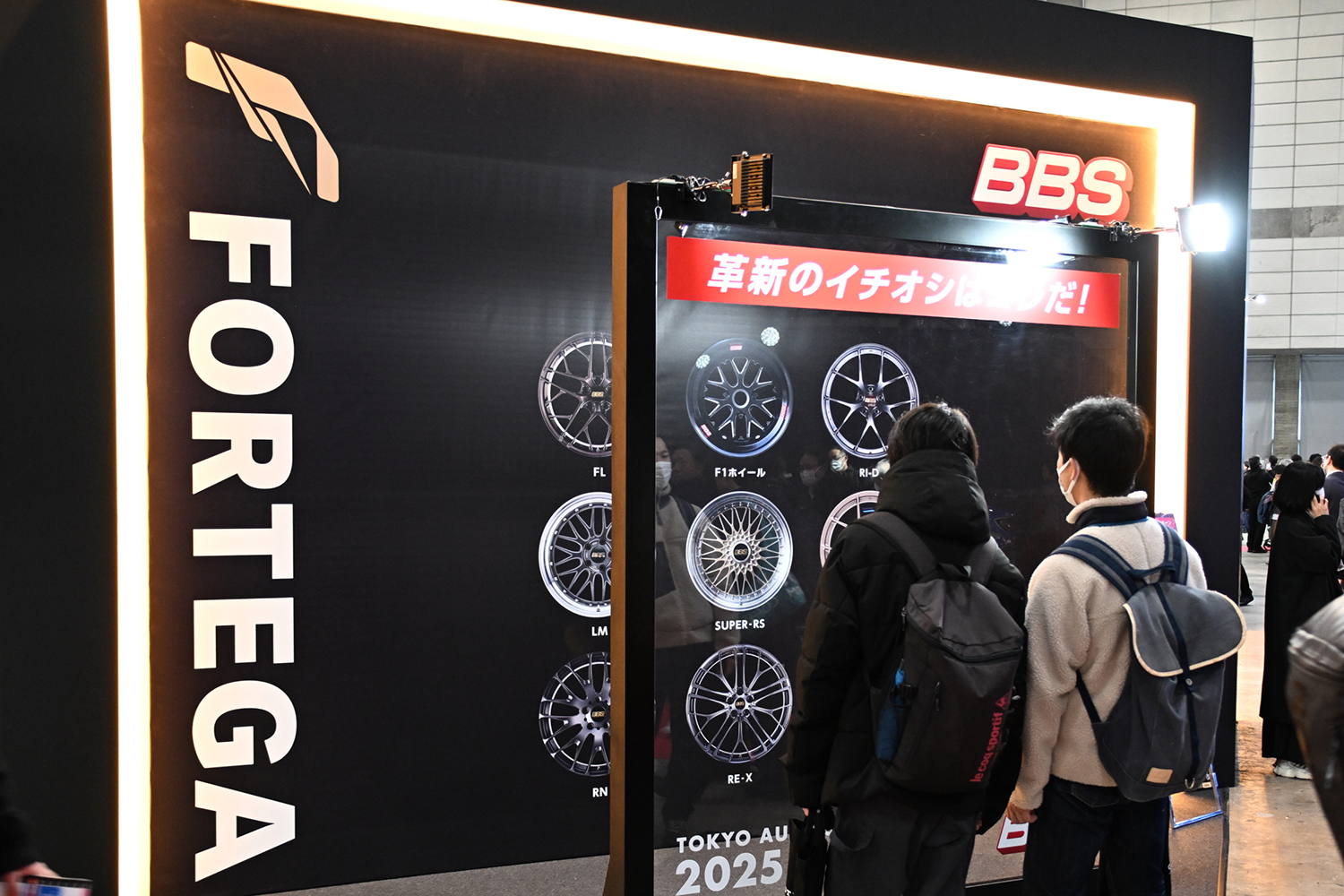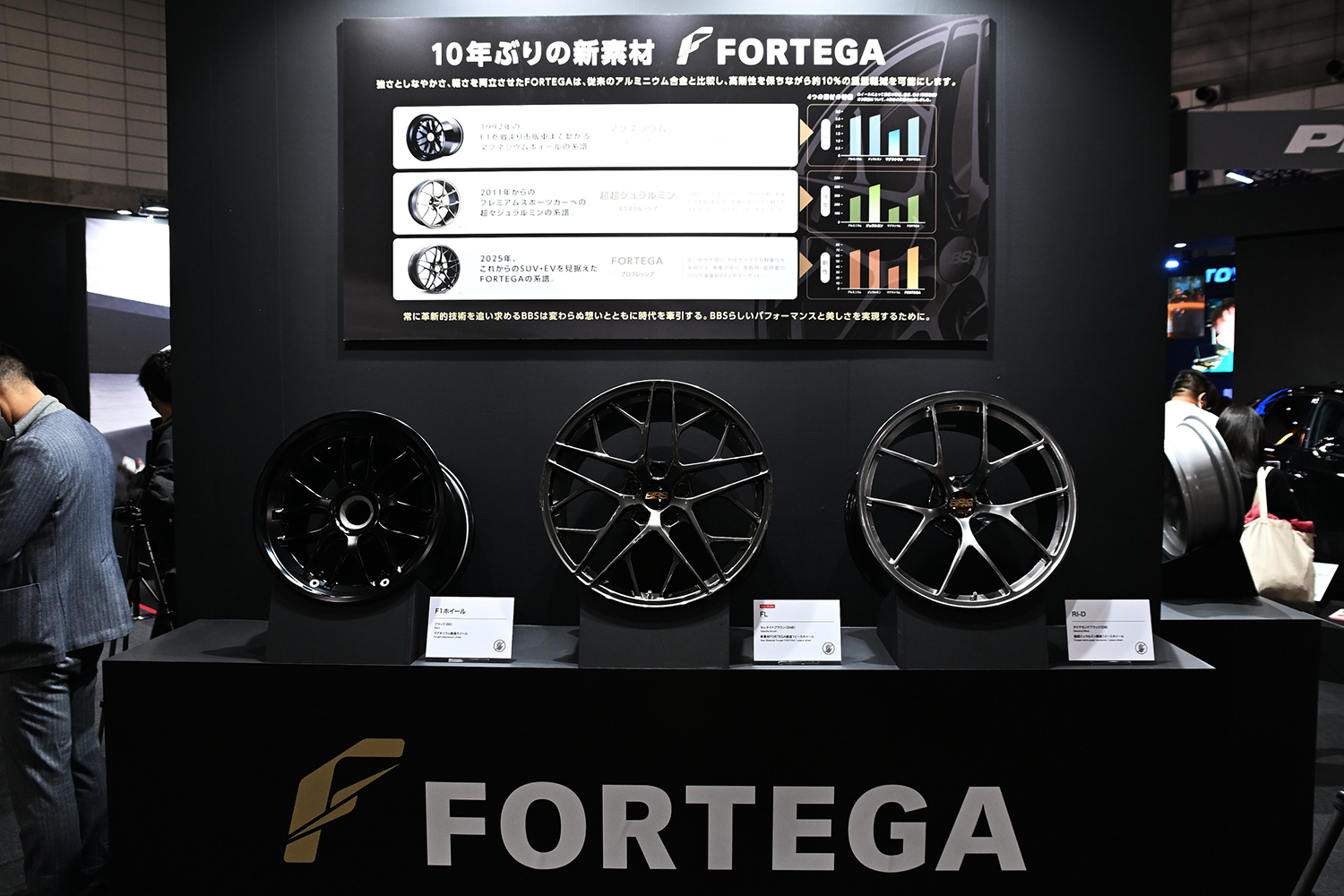 2年前の東京オートサロン2023でアルミニウム合金新素材「FORTEGA(フォルテガ)」を発表したBBS ジャパン(東8ホール)ですが、今回ついにフォルテガを使用した鍛造1ピースホイールの市販モデル「FL」を発表しました。
