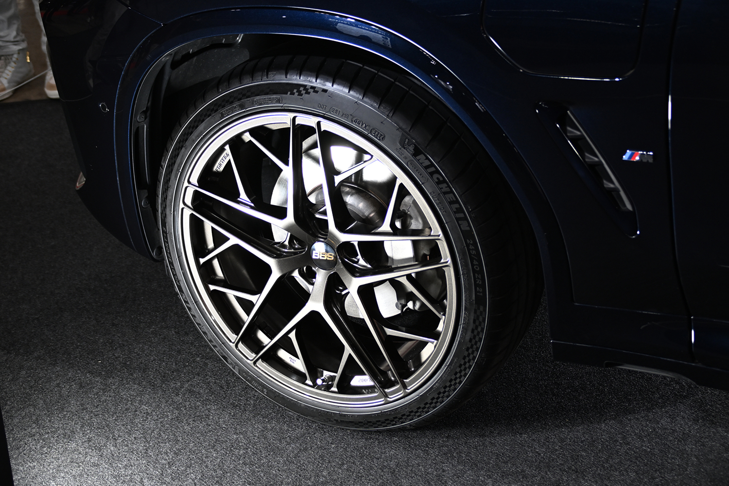 プレスカンファレンスでは、BBS ジャパンの新⽥孝之代表取締役社⻑が登壇し、BBSにとって超超ジュラルミン以来10年ぶりの新素材であるフォルテガの解説が行われました。フォルテガは、従来のアルミニウム合金よりも高剛性で10%の軽量化を実現できる素材です。このフォルテガを使用した新ホイール「FL」を使用して事前に行われた試乗会では、純正ホイールを装着したBMW iX3での比較試乗を行っており、一台当たり、ばね下重量で22㎏もの軽量化を実現したフォルテガの「FL」ホイールとの比較について、実際に参加者の評価も表示。