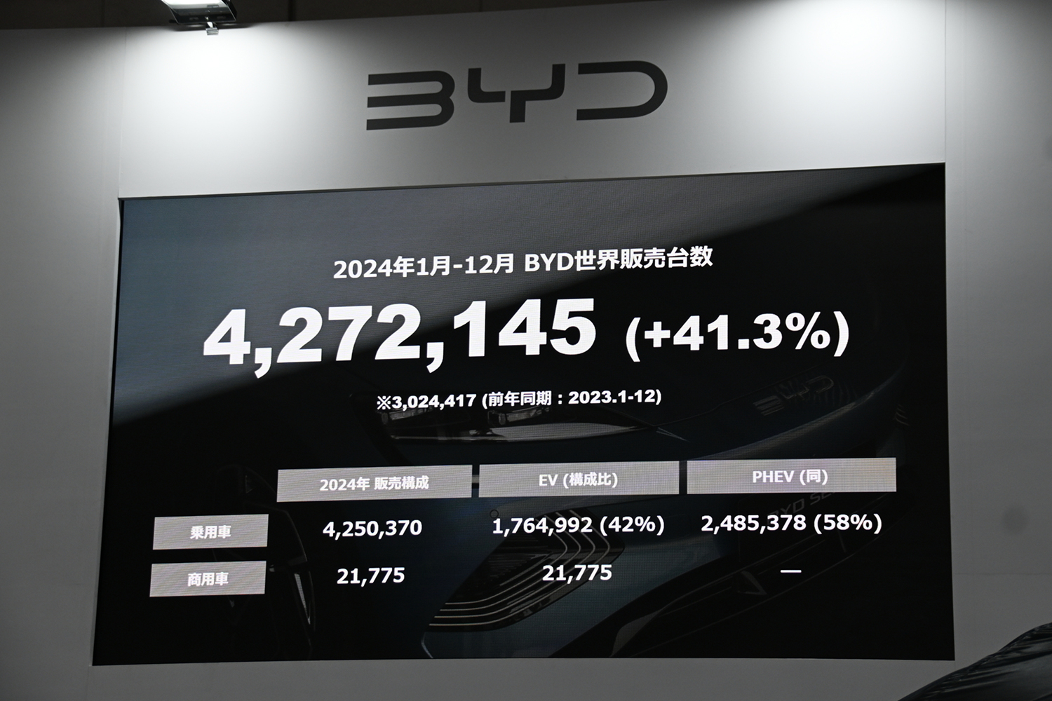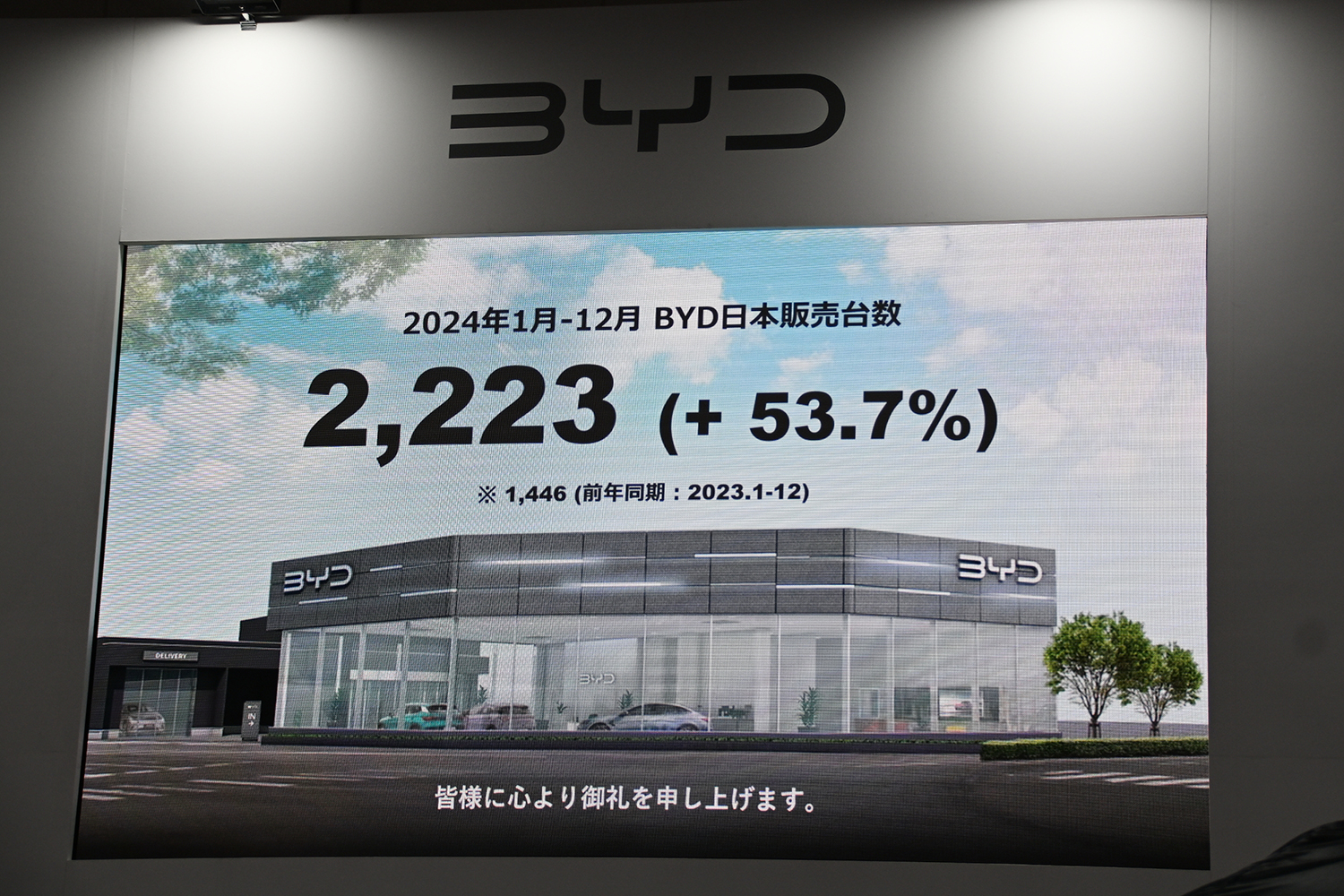 プレスカンファレンスでは、登壇した東福寺厚樹代表取締役社長が、昨年のBYDの全世界での、そして日本市場での業績報告を行い、BYDブランドが堅調な伸びを示していることを紹介。さらには日本導入モデルの「DOLPHIN」のリミテッドモデルの追加や「ATTO 3」のアップデートを行ったこと、そして6月に導入した「SEAL」がけん引役となって、売り上げが好調であることなどが報告されました。