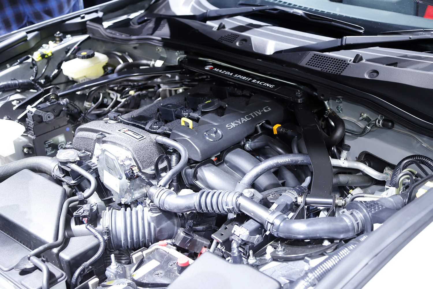 車両開発には、スーパー耐久シリーズへの参戦で鍛えられた技術や知見が反映されており、エンジンも2リッターの「SKYACTIV-G 2.0」ながら、カムシャフトやシリンダーヘッド、ピストン、エキゾーストマニホールドなどが専用設計となり、最高出力200psを発揮。トランスミッションは6速MTのみとなります。
