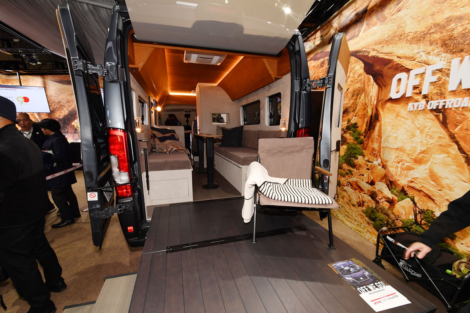 そして、最後は、「トラビオ」がベースのキャンピングカー、「Travio EXPEDITION STRIKER CUSTOMIZE CONCEPT」も登場です。日本特殊ボディー社が加装した多目的キャンピングカーとして、洗練されたデザインが特徴です。