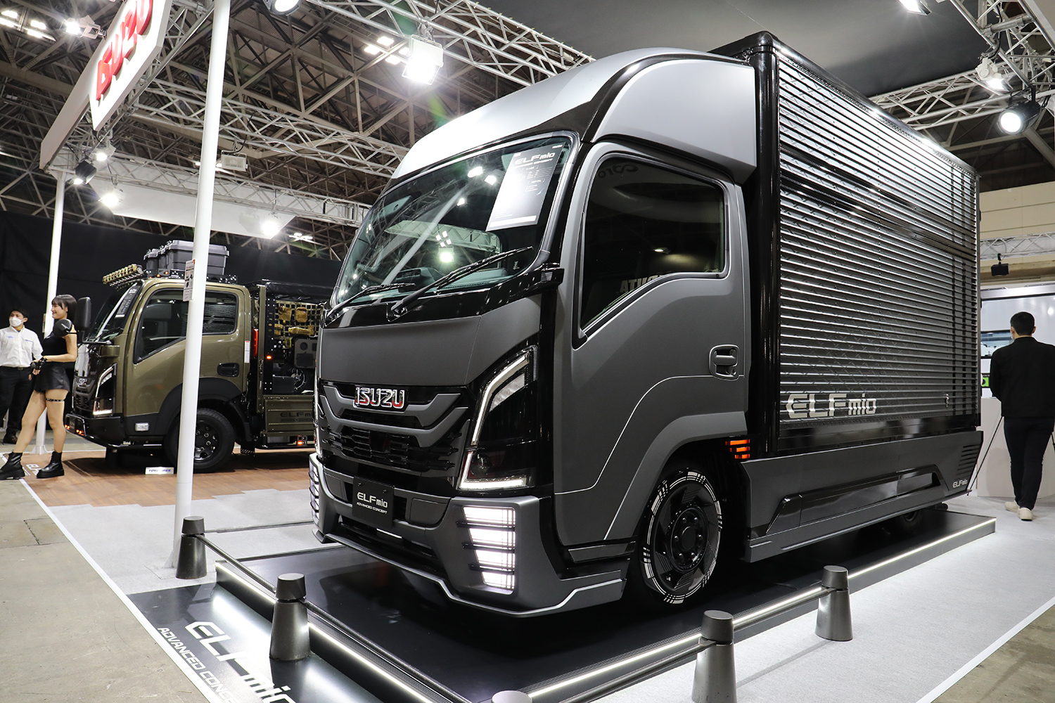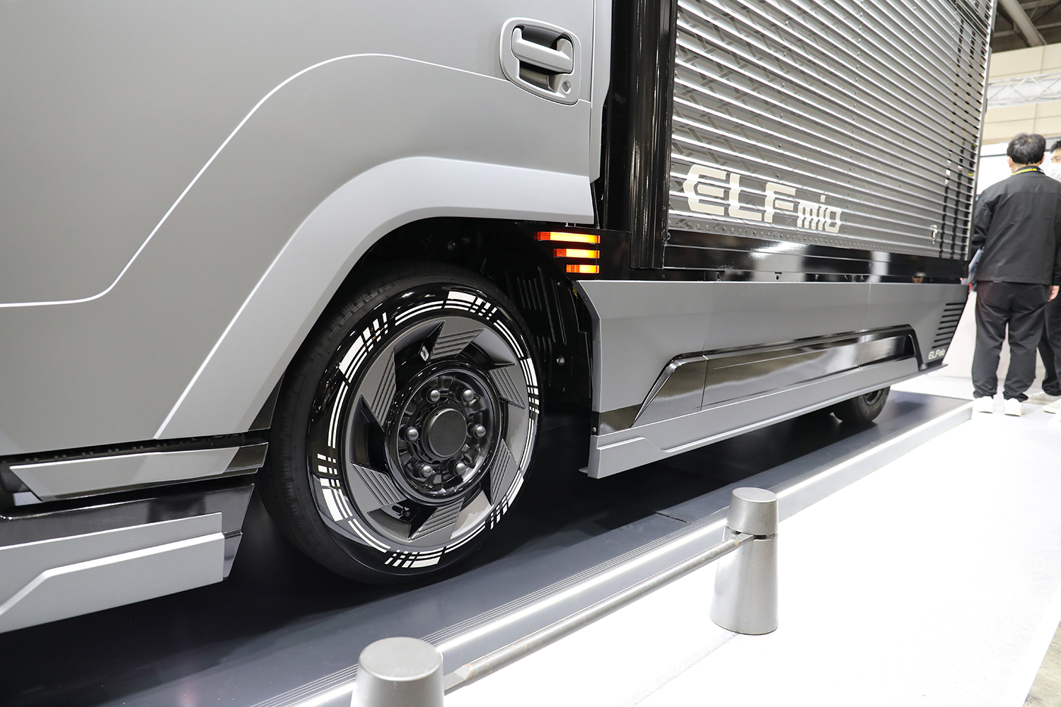 「ELFmio ADVANCED CONCEPT」も同じく「エルフミオ」がベースですが、こちらはエアロダイナミクスをイメージしたドレスアップに特化した車両です。LED内蔵のフロントバンパー、フロントグリルガーニッシュ、サイドアンダーパネルなど、商用車ドレスアップの最上級版の見本として、ぜひ会場にご覧になってください。