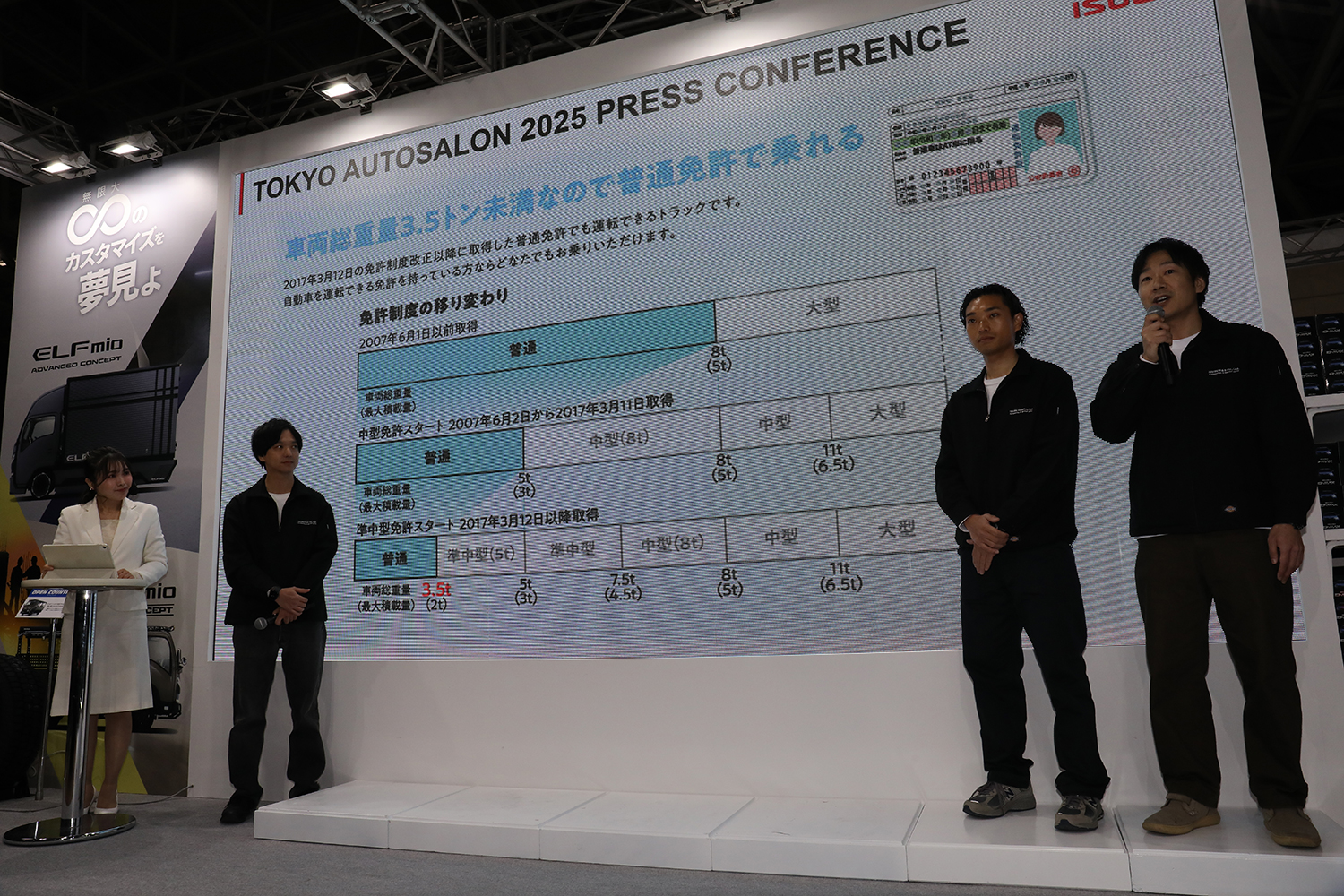 東京オートサロン2024に続いて、今年で2回目の出展となるいすゞA&S株式会社のブースは、東ホール7にあります。トラックと言えば、実用性を重視した業務用のイメージが強いところですが、いすゞA&S株式会社は、今年もそのイメージを覆すため、カスタマイズに特化した3種類のスタイルをお披露目しました。