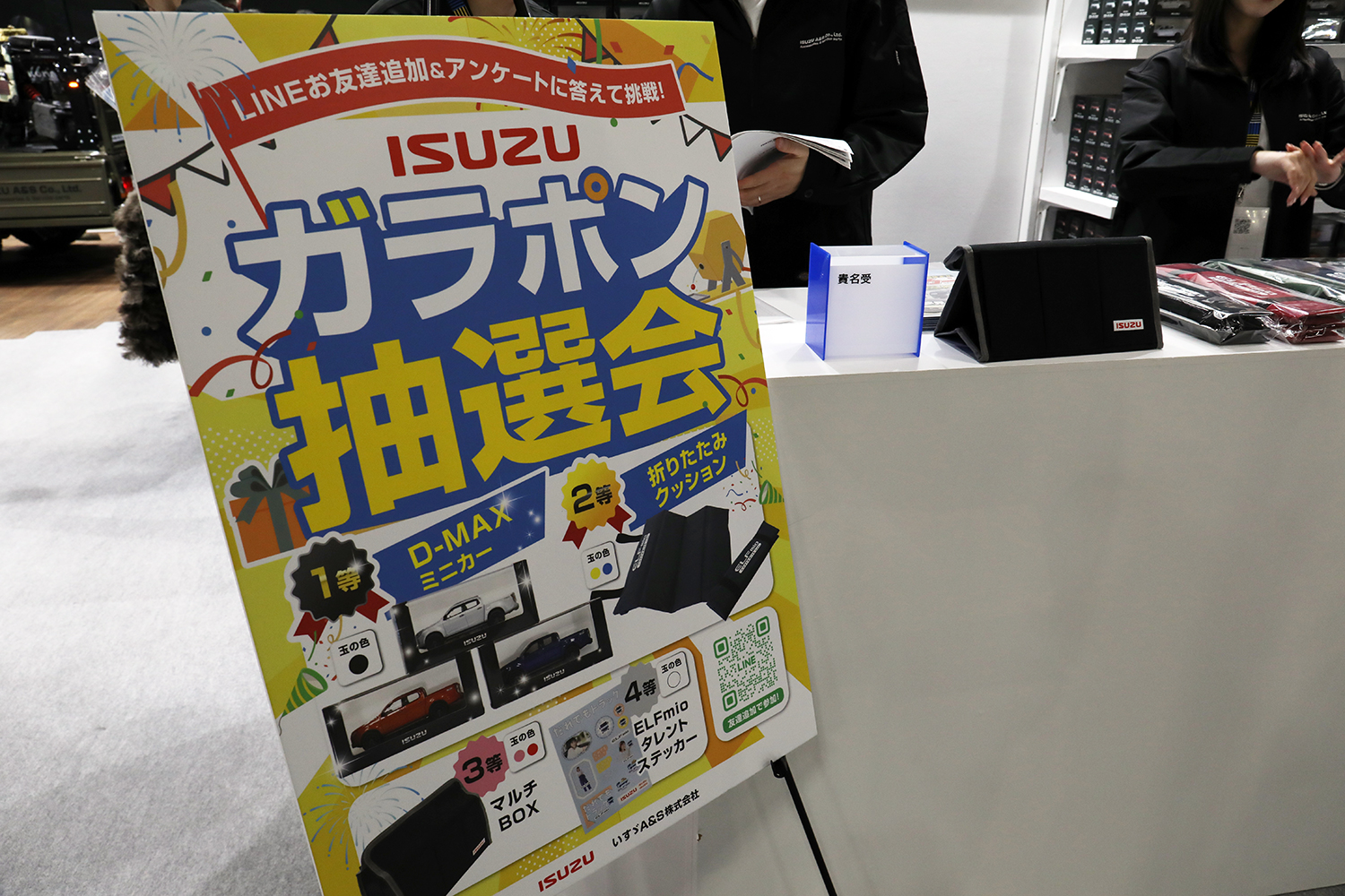 ブースでは、LINEお友達追加とアンケートに答えて挑戦できるガラポン抽選会も開催中。足を運んで、オリジナルミニカーなどをゲットしましょう!