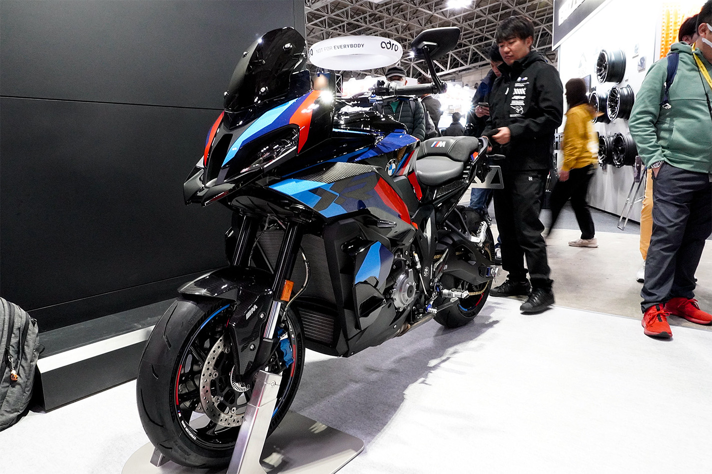 そして、2輪ファンにも嬉しい展示がBMWブースには飾ってあります。同じMモデルでも、こちらはモトラッドのMモデル。初のモタードモデル「M 1000 XR」が展示されていました。こちらも24年の5月に登場したばかりのニューモデル。一度見てみたいと思っている人も多いのではないでしょうか。