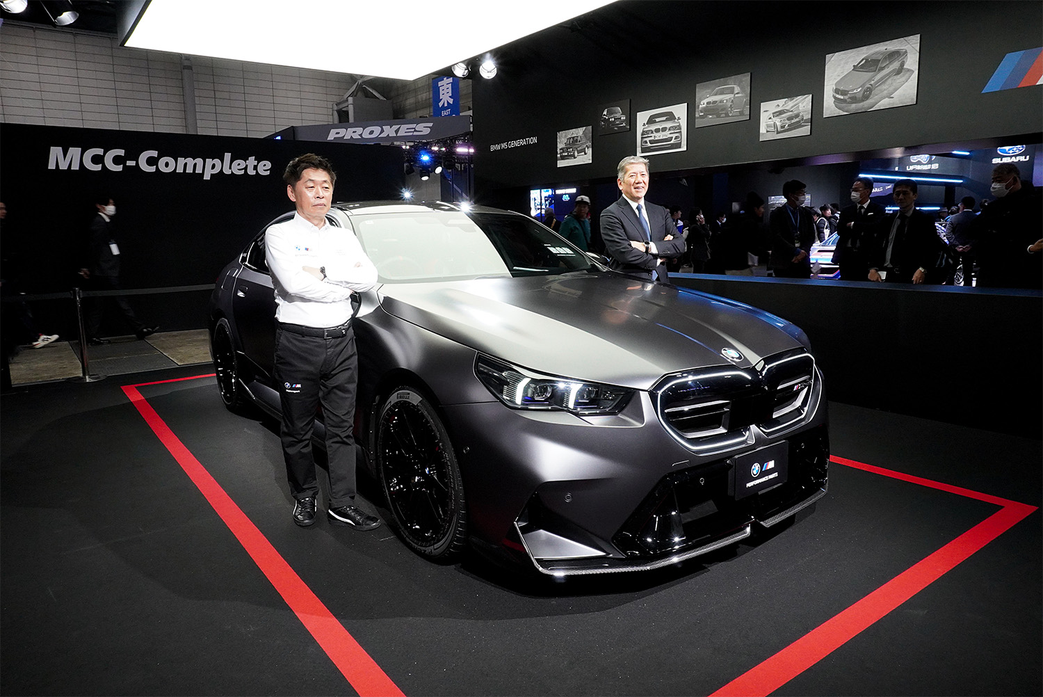 BMWブースでは、昨年2024年に登場したばかりの最新ハイパフォーマンスPHEV「M5」の、コンプリートモデルが早くも登場しました。