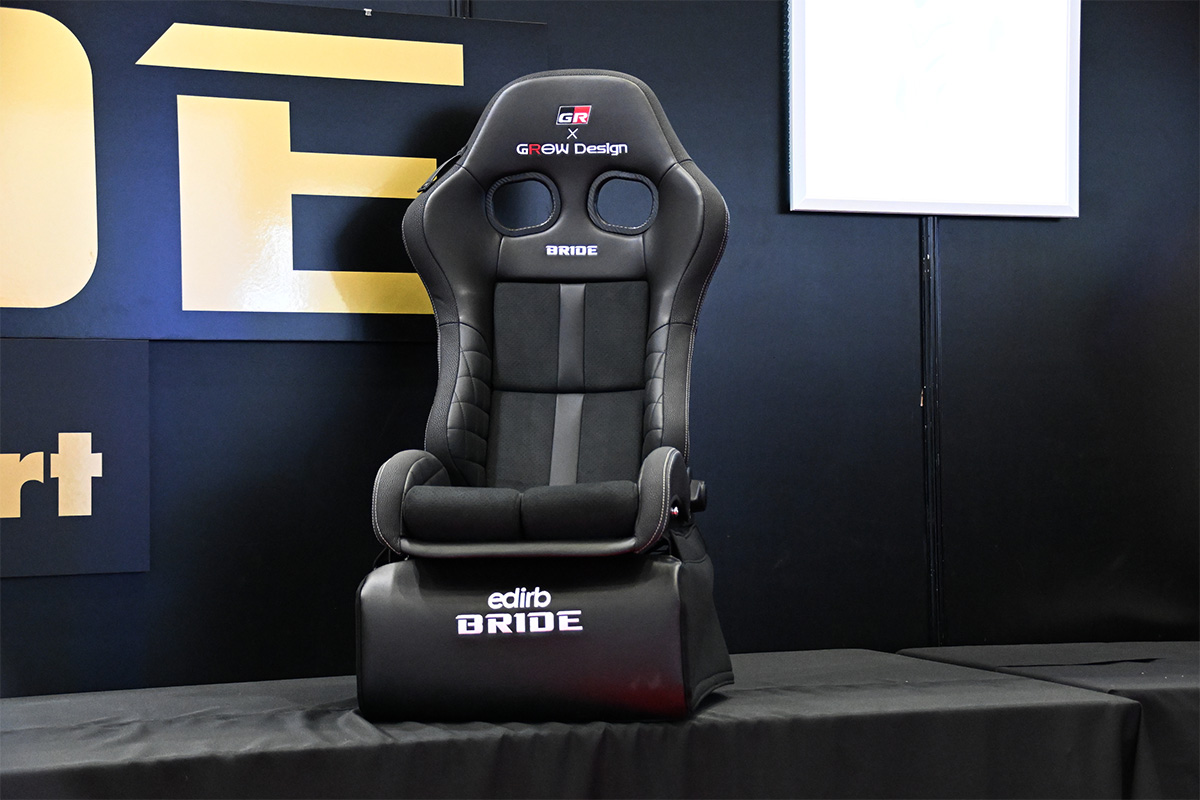さらにOEM供給しているモデルですが、レーシングドライバー佐々木雅弘がスポーツドライビングとストリートでの快適性にこだわり開発した「GR TOYOTA Gazoo Racing × GROW Design AERO STABILIZING SPORT SEAT」も紹介されました。こちらはシート座面に、スポーツシート初となる「導電性表皮材」を用い、ドライバーとその周辺に溜まっている静電気をボディ全体に分散させて帯電量を軽減させるというシートとなります。具体的には安定した車両挙動に貢献することで、疲れにくく、気持ちのいいドライビングができるということです。こちらはGR86、GRヤリス、GRカローラ専用モデルです。