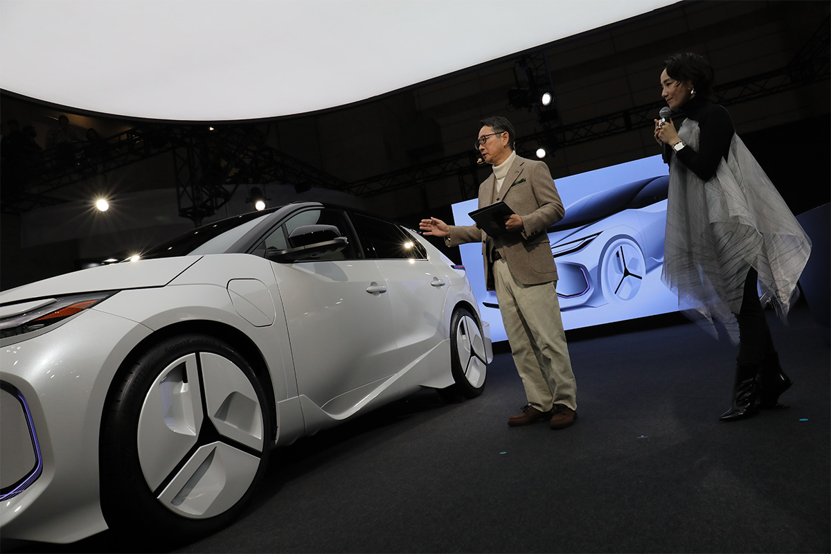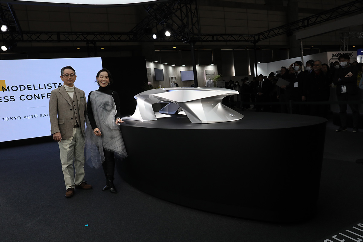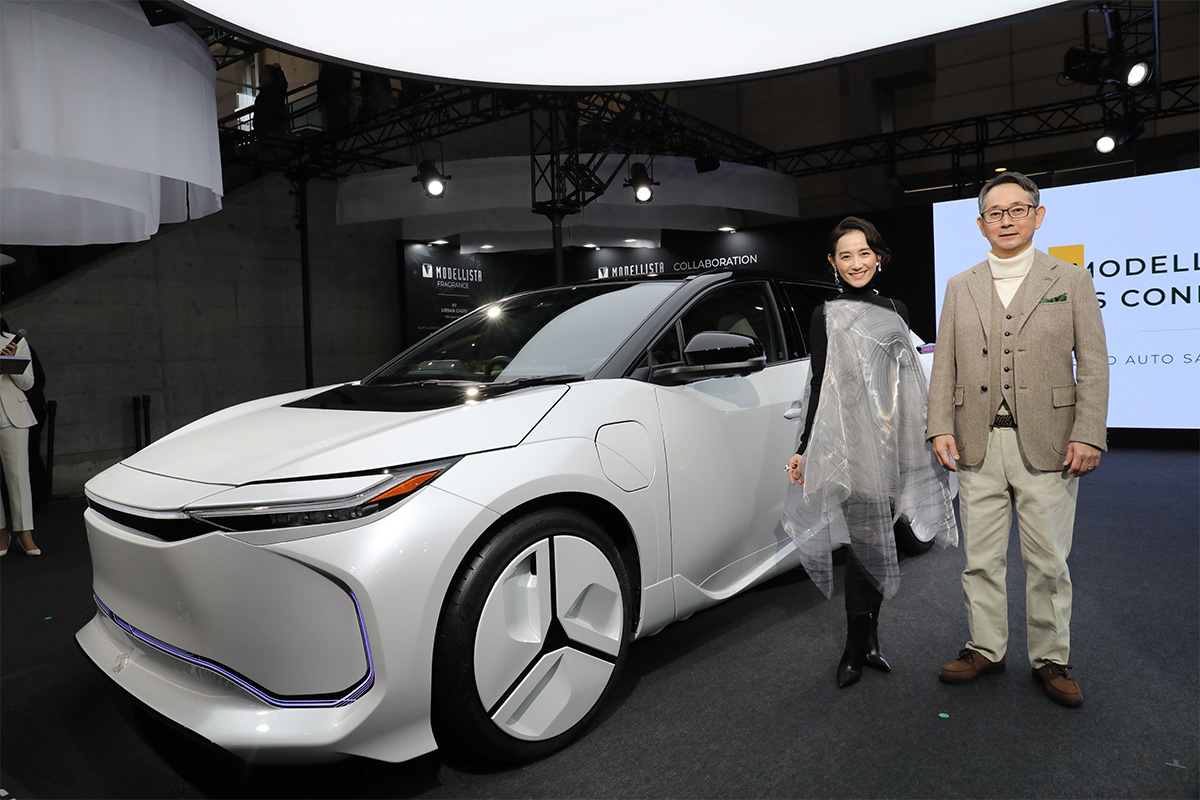 もうひとつの展示が、トヨタ・bZ4Xをベースとしたコンセプトモデル、「MODELLISTA CONCEPT ZERO(モデリスタコンセプトゼロ)」です。「美しいものには意味がある。その裏側に機能がある」と語った同社代表取締役の西脇憲三氏。空力をイメージしたデザインが実装された“新化”のスタディモデルとなります。