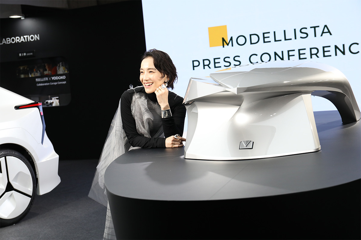 株式会社トヨタカスタマイジング&ディベロップメントが展開するMODELLISTA。今年のブースはブランドの“新化”を表現する2種類のイメージコンセプトが展示されました。しかも、去年に続いてスペシャルゲストとして、篠原ともえさんが登場! タレントとして芸能界にデビューした篠原さんですが、現在は衣装デザイナーとして活躍中。今回もご自身の五感を駆使して制作した、2025年度のMODELLISTAブースにリンクしたオリジナルデザインの衣装が印象的でした。