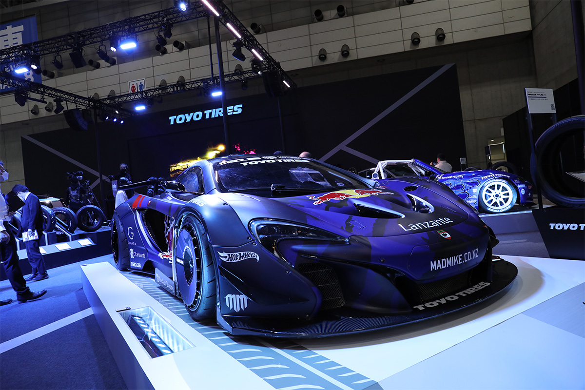 マッド・マイク選手が手がけた自身のパフォーマンス用に手掛けたハイパーカー、「McLaren P1GTR MadMac」。タイヤは「PROXES R888R Drift」を装着。