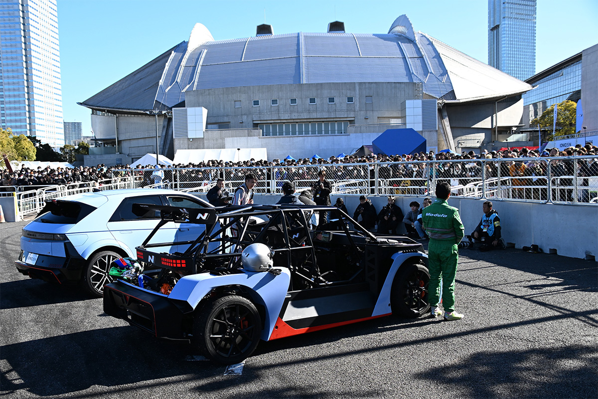 そのドライバーには、アイオニック5Nに谷口信輝選手、そしてRN24には土屋圭市氏が乗り込んで会場に姿を見せた。