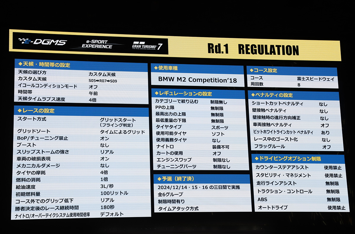東京オートサロン2025でも、最新の「グランツーリスモ7」を使用した大会が2日間ともに開催されるが、1月11日(土)13時より「e-DGMS by グランツーリスモ@東京オートサロン2025 テクニカルカレッジGP/e-DGMS GP」が開催された。