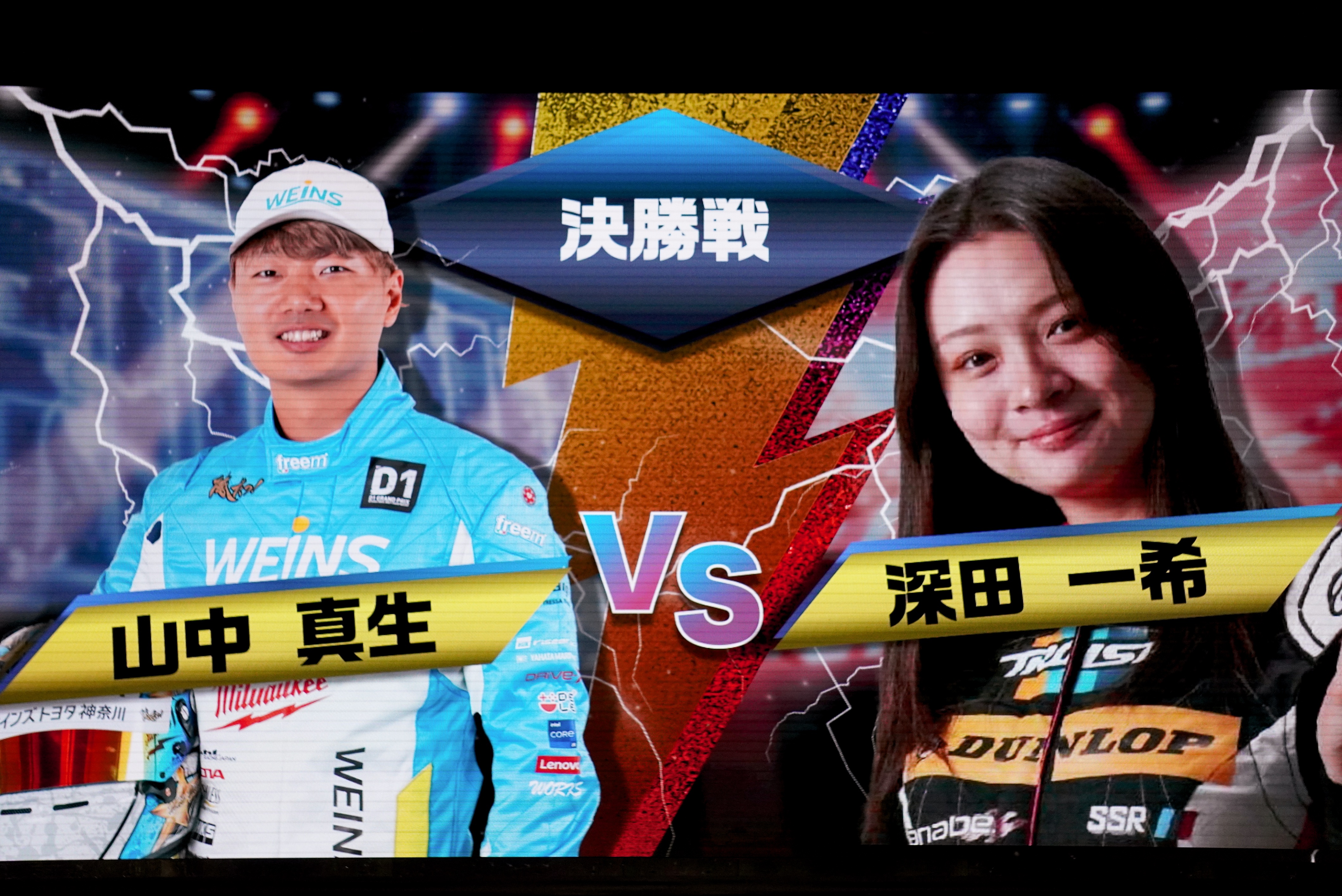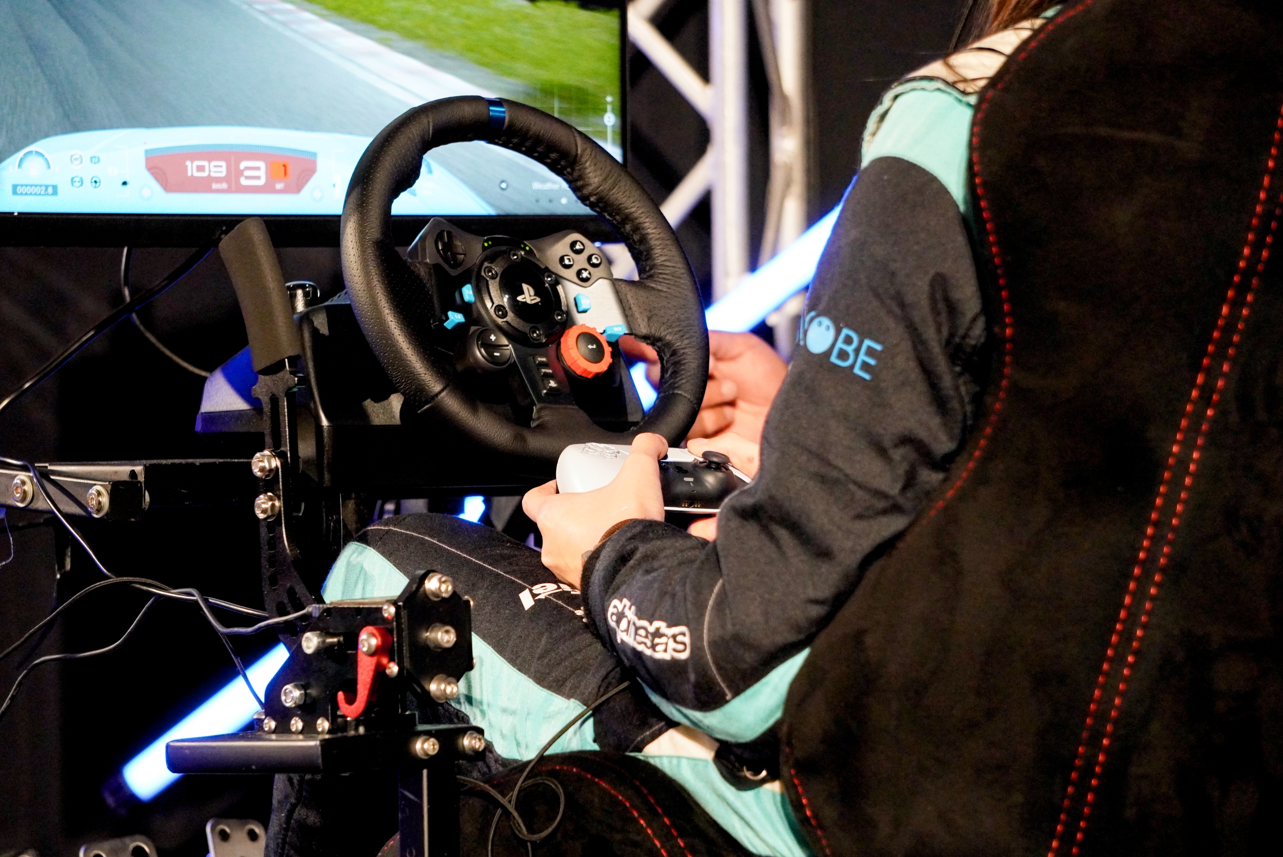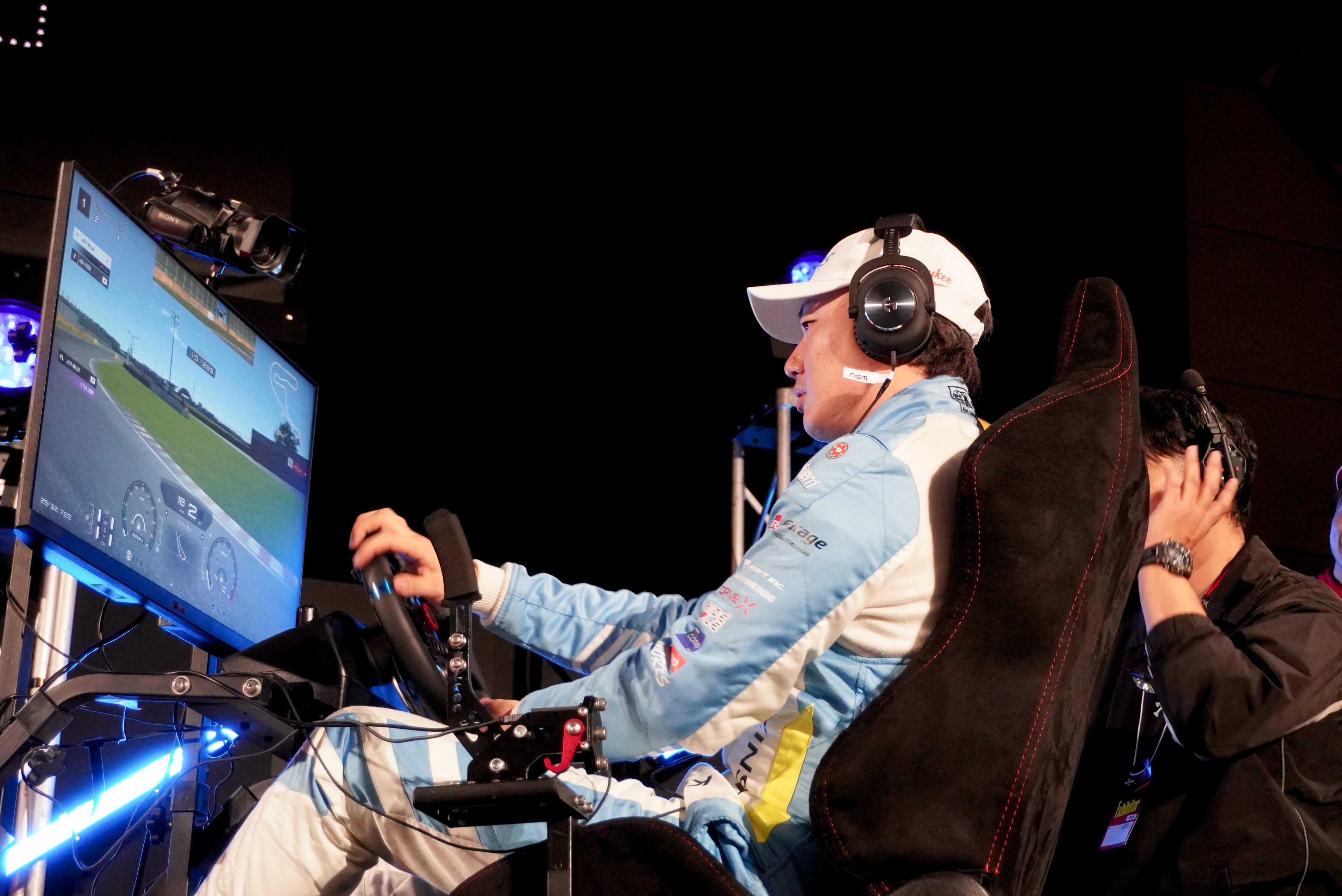 実車での行うドリフト走行とは、どうやらだいぶ相違があるようで各ドライバーたちはドリフト走行に苦戦。ステアリングの切れ過ぎや、サイドブレーキの掛け方の違いなど、細かい操作が実車ほど反映されない点がゲームプレイを難しくしているようだ。そんななか、昨年初代チャンピオンを獲得した深田一希選手はさすがの安定した走行を披露。その手元にはステアリング型のコントローラーではなく、通常のプレイステーション用ゲームパッドが握られていた。