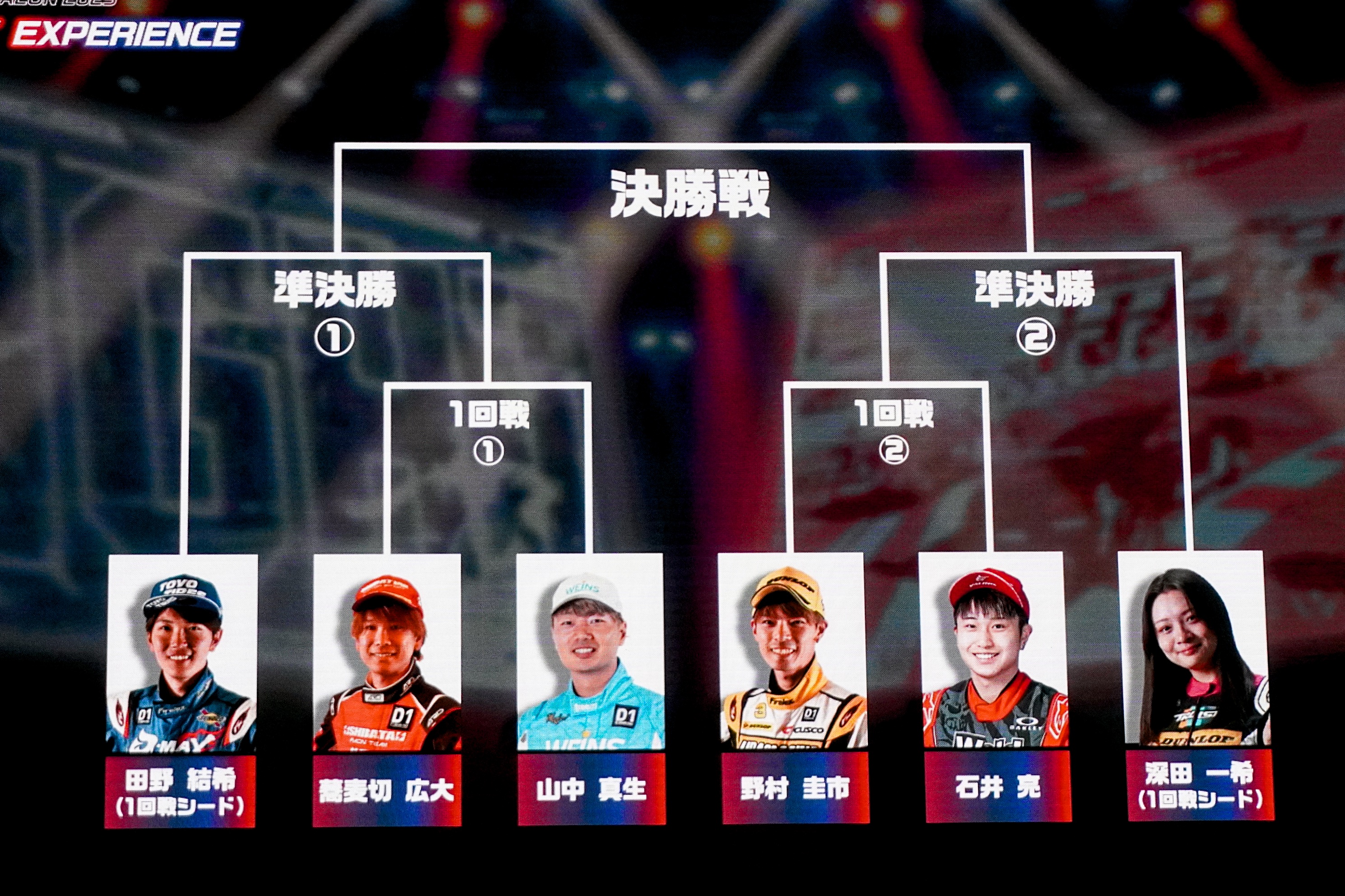 観覧席は満席。D1ドライバーのファンで埋め尽くされ、派手なドリフト走行に一喜一憂するシーンが多く見られた。6人のドライバーたちはD1の追走型式で走行。トーナメント方式での勝ち残りをかけて、慣れないゲーム用シミュレーターに苦戦しながら戦い抜いていった。