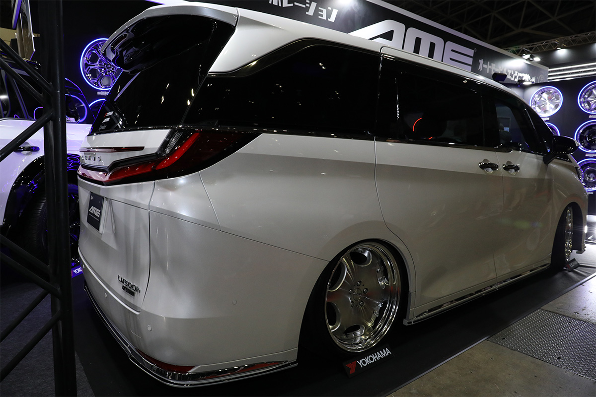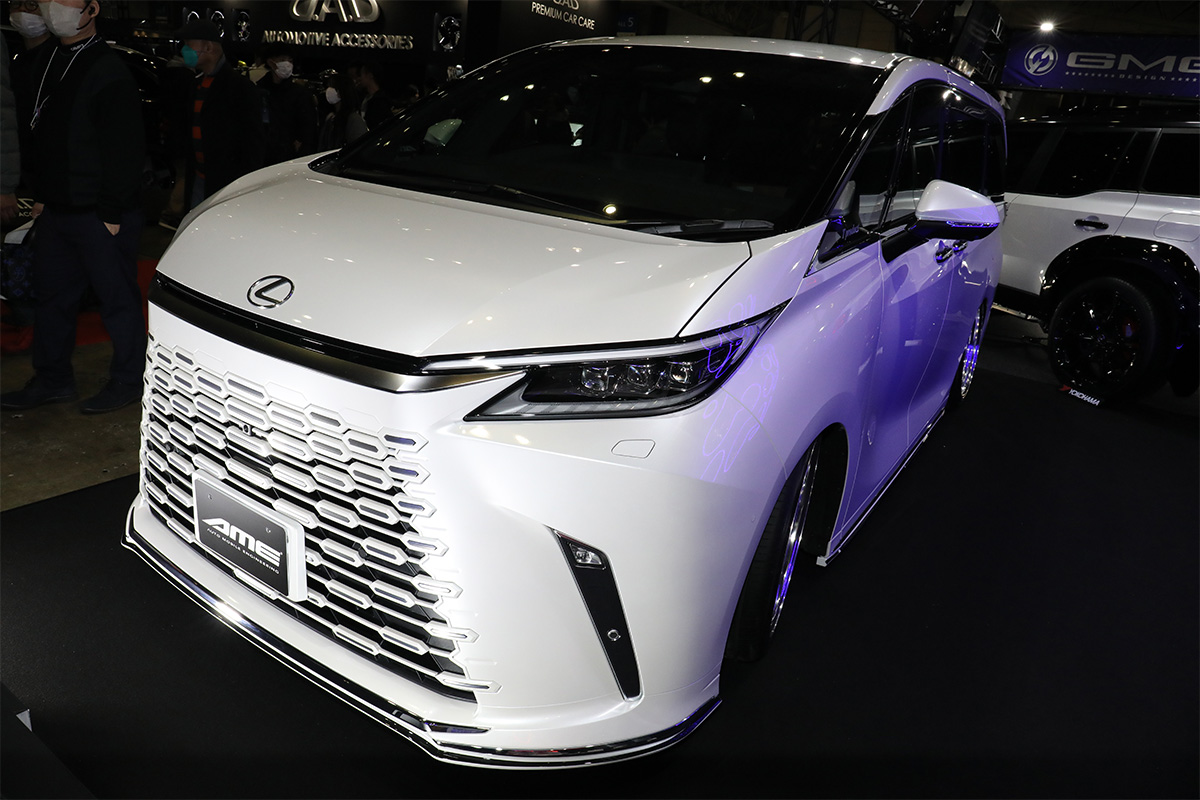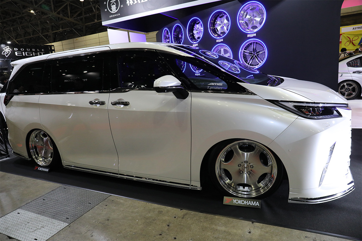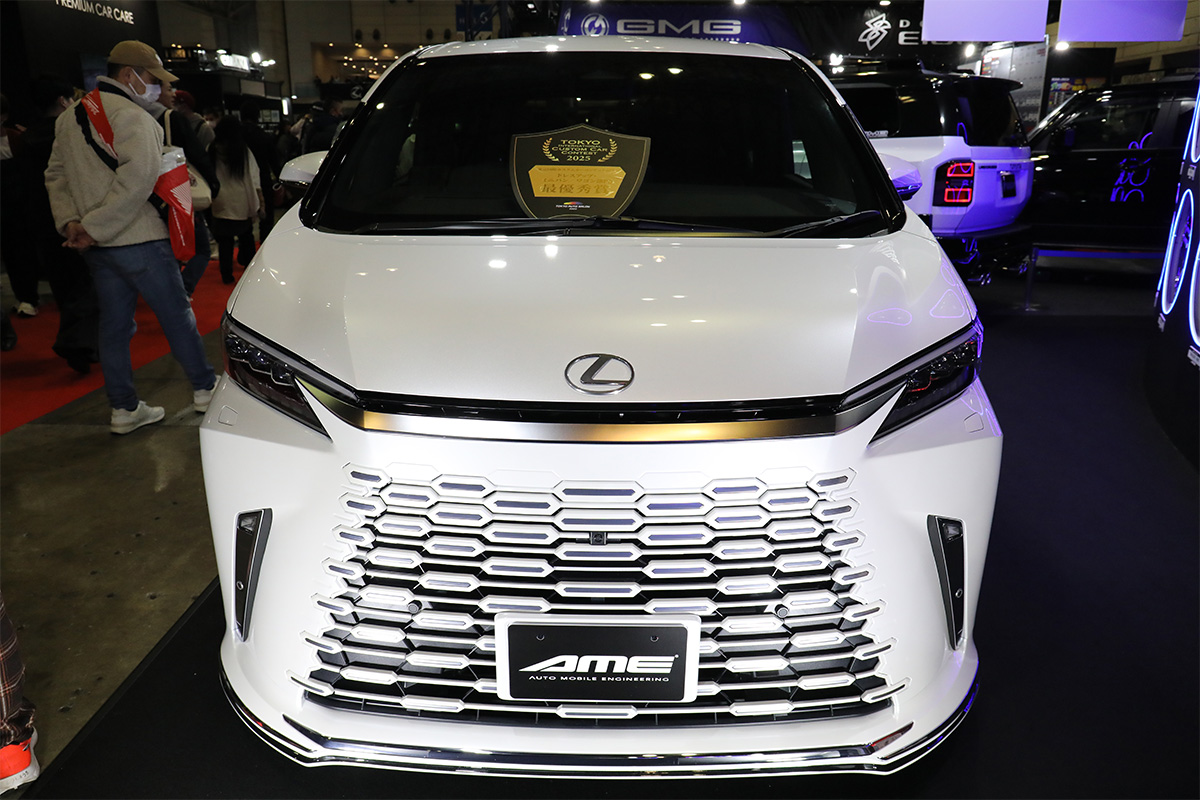 このレクサス・LMは、T.productのオリジナルエアロとホイールブランドであるAMEの「シャレン」が装着されているのがポイントです。超高級ミニバンであるレクサス・LMをドレスアップするのに、いかにより上品に仕上げるのかが、各ビルダーやメーカーの腕の見せ所。車両を製作したT.product代表の坪井さんのセンスで、高級感とスポーティ感を最高レベルで融合することに成功。それが多くの来場者に伝わった結果が、このドレスアップ・セダン/ミニバン部門での最優秀賞獲得に繋がったのは間違いありません。