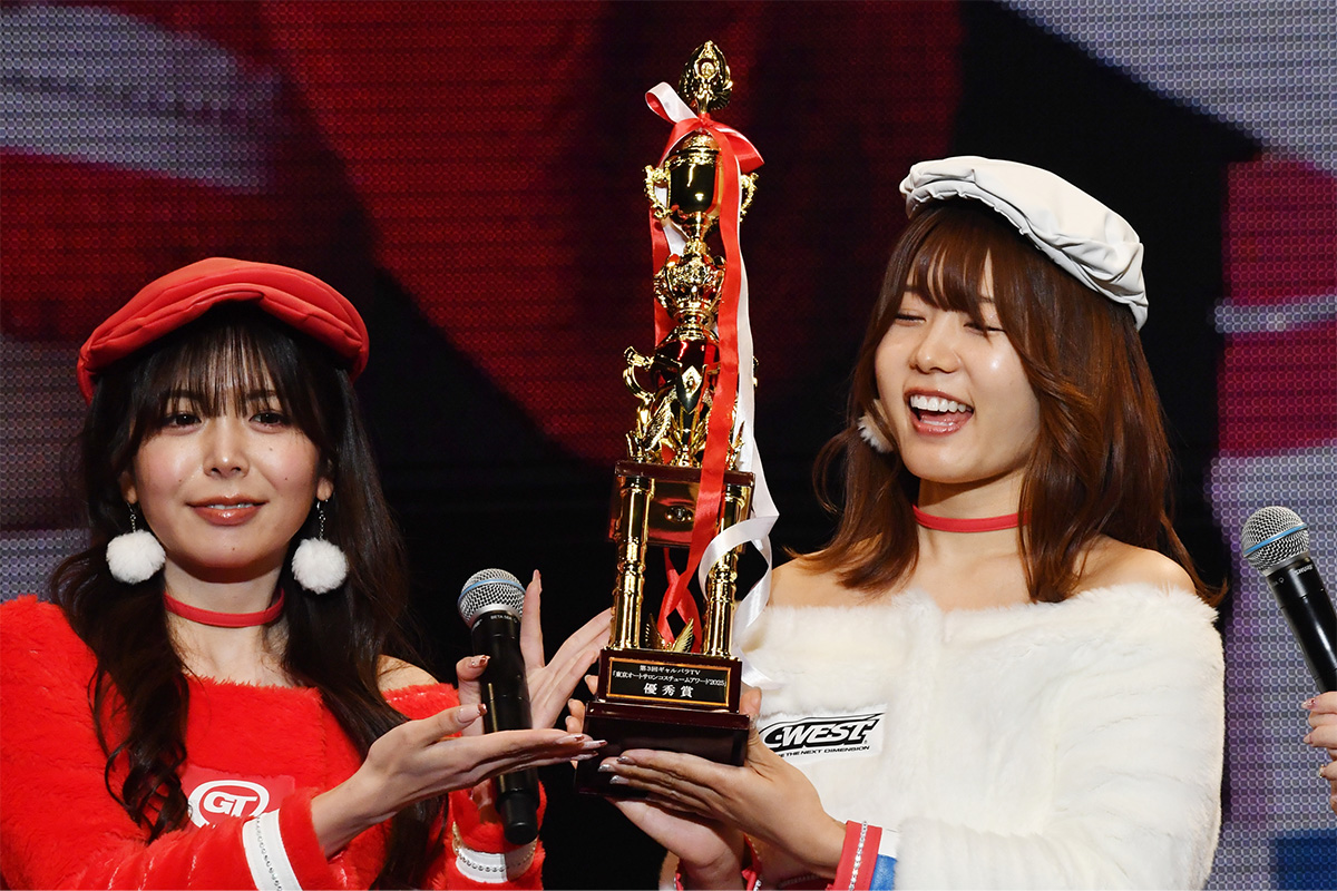 およそ400社の出展があった今回の「東京オートサロン2025」では、BMW ATTENDANT(BMW Japan/東7ホール)、スフィアガール(SPHERELIGHT/中4ホール)、C-WEST GIRLS /GTNET GIRLS(C-WEST/西3ホール)の3組が優秀賞に選ばれ、トロフィーが授与されました。