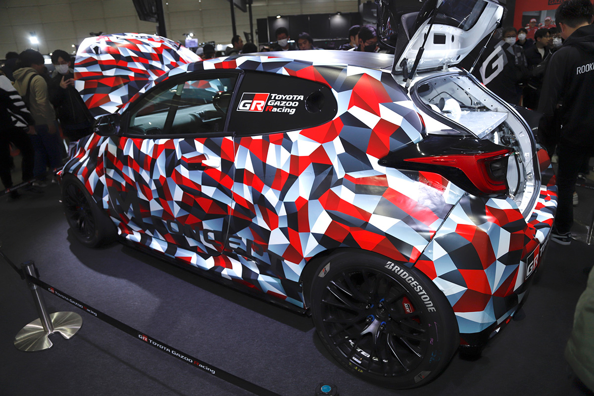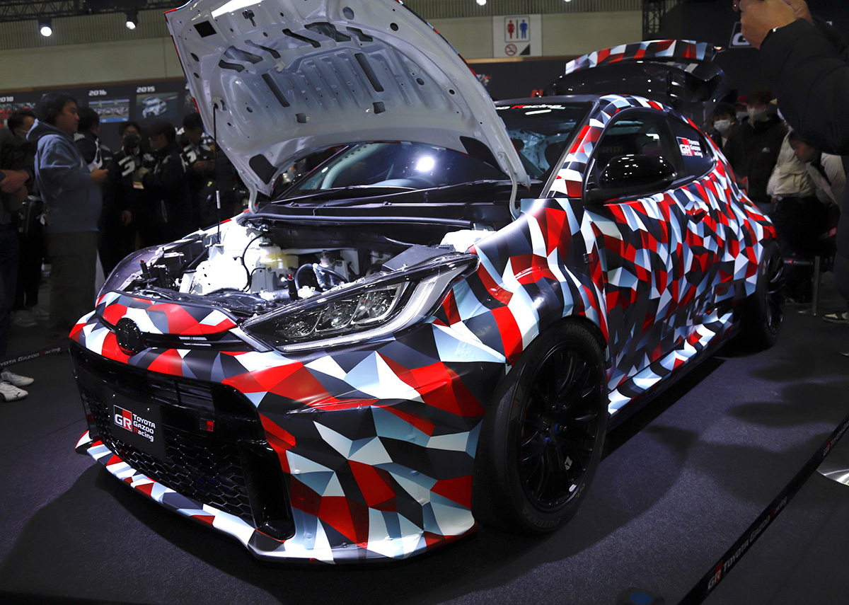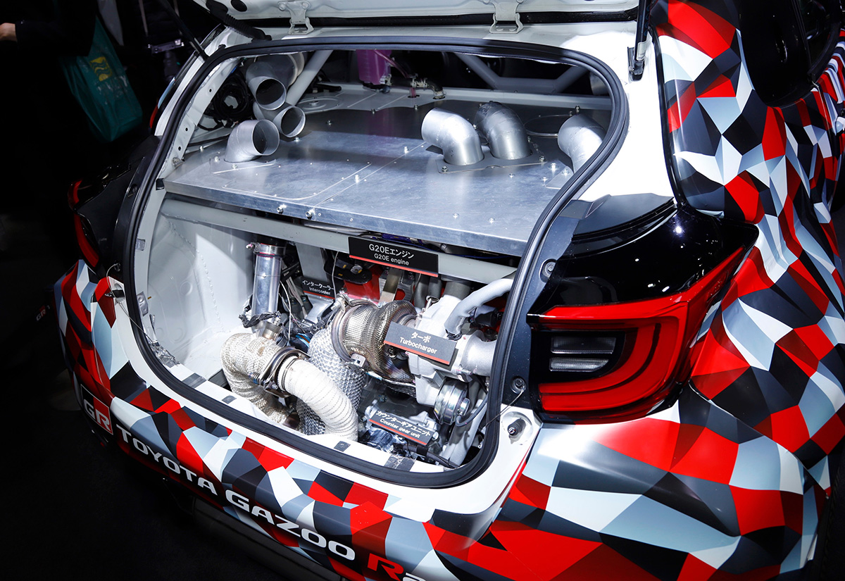 リアミッドシップへと改造したのも驚きですが、エンジンもGRヤリスが搭載する1.6リッター3気筒ターボから、新規開発中の「G20E型」2リッター4気筒ターボを搭載。このG20型は公道用で400ps以上、レース仕様では600ps以上を実現しているとのこと。