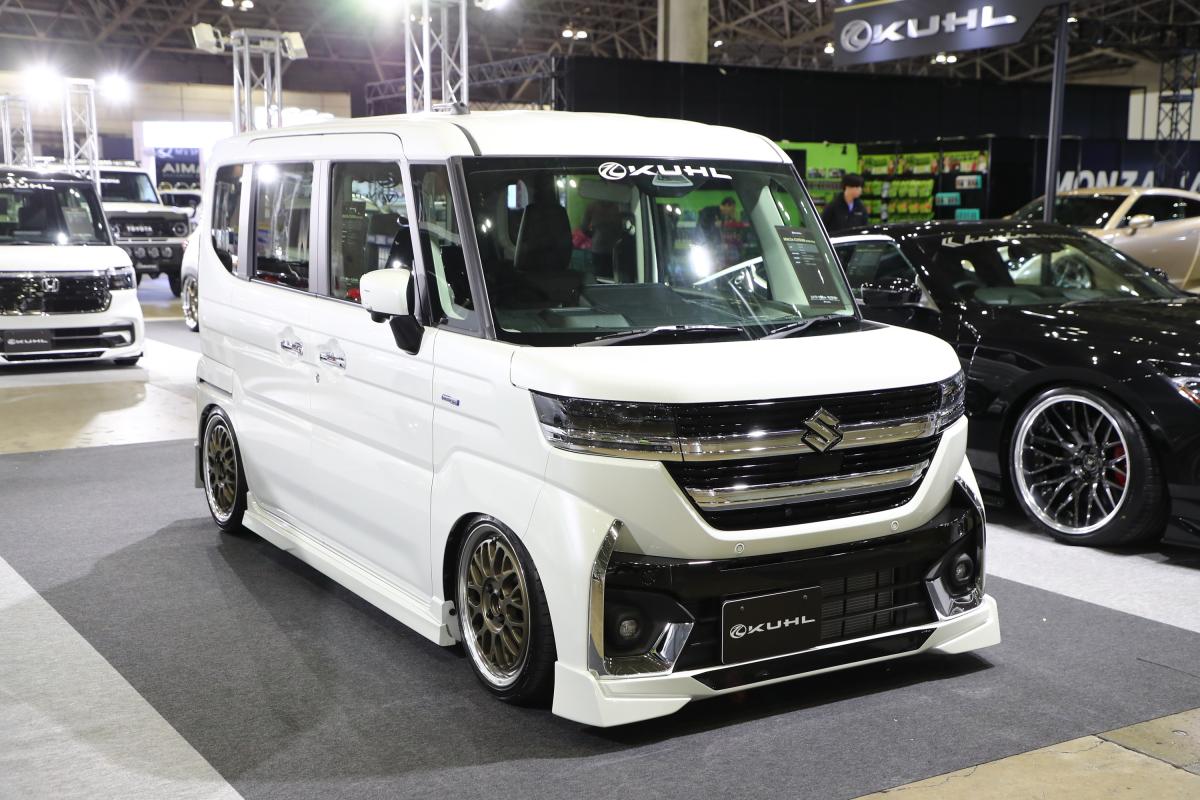 人気のスペーシアカスタムをよりスポーティ&レーシーに仕上げるKUHL STYLE KIT!ノーマル車高・ノーマルホイールでも似合うエアロパーツでありながら、エアサスフルダウンによるヘビーカスタムスタイルにも対応!新作VERZ-DDR02 メッシュ深リムホイールを組み合わせ、さりげなくもインパクトあるカスタマイズスタイルを実現!