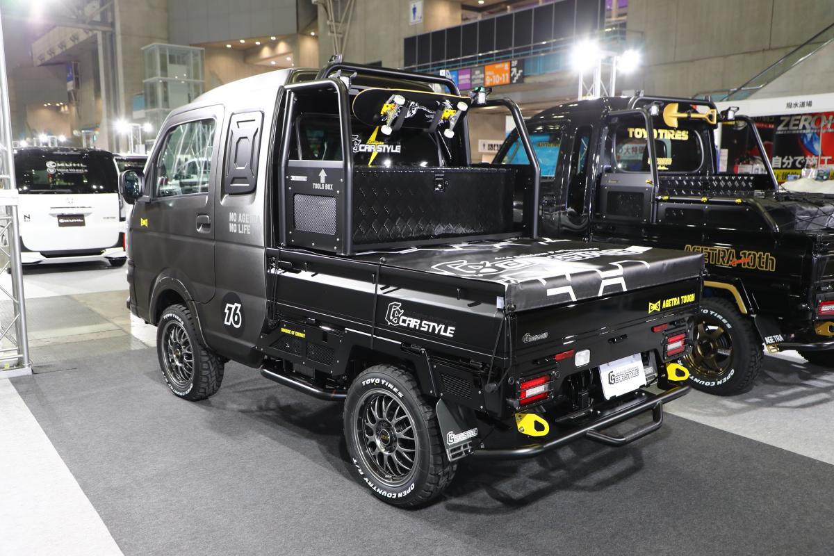 「オールラウンドアクティブカー」AGETRA GEAR TOUGH 登場。AGETRAを手掛けるCARSTYLEがこれまでの歴史を踏襲し作り上げた最高傑作の1台。スズキキャリイの形状を研究しオリジナルのフロントマスクにギミックを詰め込んだ。ほかパーツは評判の高いパーツを更にアップデートした車両に仕上がった。